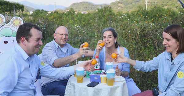 意大利驻广州总领事德派罗表示,这里的田园自然风光非常漂亮,贡柑非常好吃,他们一家人在果园玩得流连忘返,也摘了很多贡柑带回去与朋友分享,这次德庆之旅让他们非常开心。