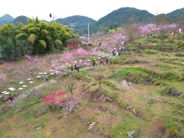 “三里板桥七里坪,烟墩山下业州城。百花齐放缤纷色,桃源深处是罗家。”又是一年桃花开,湖北省建始县业州镇罗家坝的800亩桃花次第绽放。