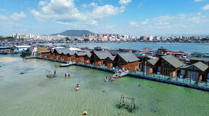 随着海南自贸港建设的不断推进,旅居陵水的外地游客也越来越多。在新村镇政府的支持下,疍家人利用原有的养殖渔排改造升级成疍家渔排海上民宿和海上餐厅。疍家渔排海上民宿房型似疍家船屋,配套海上疍家陈列馆、海上娱乐项目,游客既可以体验捕捞海星海胆等新型特色体验项目,也可以身临其境地感受渔家风情、体验疍家文化。截至今年7月,当地累计接待游客已达10万人次。