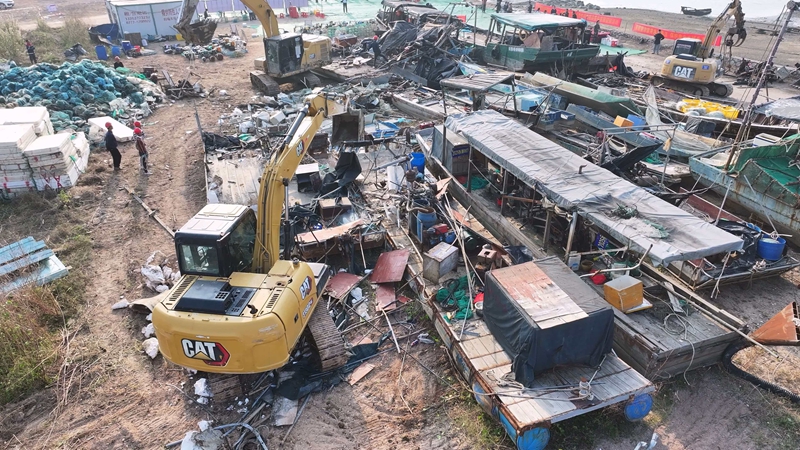 现场公开集中拆解158艘海洋涉渔违法“三无”船舶并销毁一批违禁渔具、非法水生野生动物制品,有力震慑各类涉渔违法犯罪行为。这次活动既是深化涉海涉渔综合管控的生动实践,也是渔业部门协同各级各单位坚决清理取缔涉渔违法“三无”船舶、严厉打击非法捕捞、非法交易信心与决心的集中彰显。