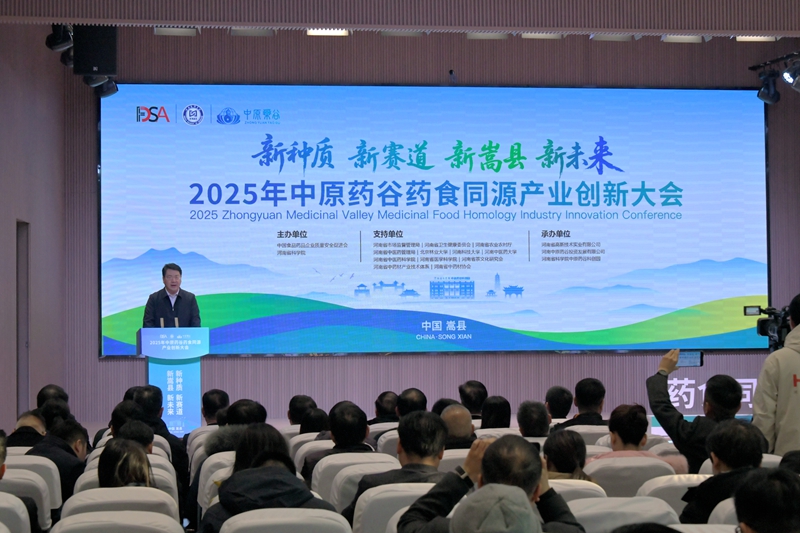 12月19日,2025年中原药谷药食同源产业创新大会在河南嵩县举行。大会由中国食品药品企业质量安全促进会、河南省科学院共同主办,以“新种质、新赛道、新嵩县、新未来”为主题,汇聚多位院士、专家学者、行业协会、金融机构和企业代表,共话药食同源产业创新发展新路径,共绘中原药谷高质量发展新蓝图。