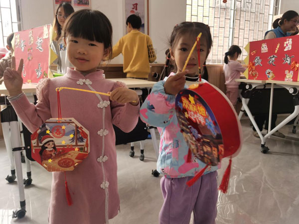活动现场,工作人员为孩子们设置猜灯谜、夹汤圆、做花灯、好运汽水等活动,孩子在活动的玩得不亦乐乎。最有趣的是做花灯,小朋友们迫不及待地打开材料包,细心将灯笼的各个部位进行拼凑,依照顺序认真地完成了贴画。不一会儿,一个个透着喜庆的灯笼和元宵贴画呈现在大家眼前,小朋友们的脸上洋溢着兴奋和满足。