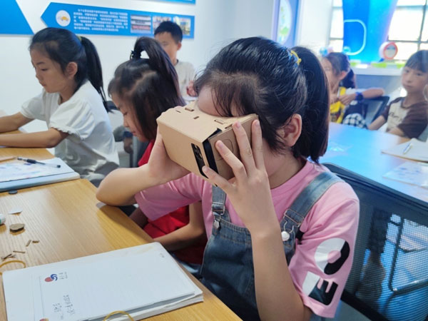 学习科学原理,培养创新意识。为培养孩子们对科学的兴趣,志愿者们充分利用农家书屋的各类数字资源,为孩子们带来了魔法光学主题课程,通过动画讲解和动手VR眼镜制作的方式,揭秘了虚拟现实技术蕴含着的科学知识,以最近距离感受科技的绚丽多彩。