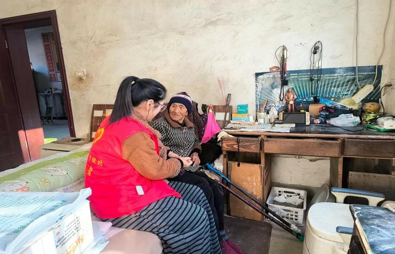 理论学习的温度,还要转化为为民服务的热度。学习结束后,党员干部带头组成走访小队,带着政策手册与真情关怀,直奔困难群众家中。章兴林与何莲花一行来到李名生夫妻家中,细致检查中发现煤气罐接口老化存在安全隐患,当即联系村委会安排专人当日下午更换;何莲花一边帮老人整理床铺,一边用通俗话语讲解医保报销政策:“奶奶,2026年医保缴费已经开始啦,可别忘了按时缴纳,看病时记得带好医保卡,很多药费、检查费都能按比例报销,能省不少钱哩!”