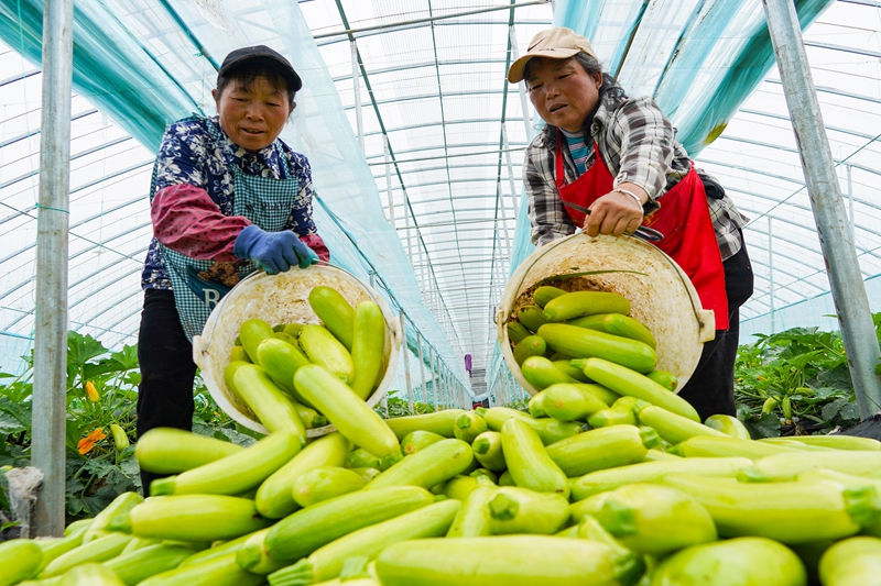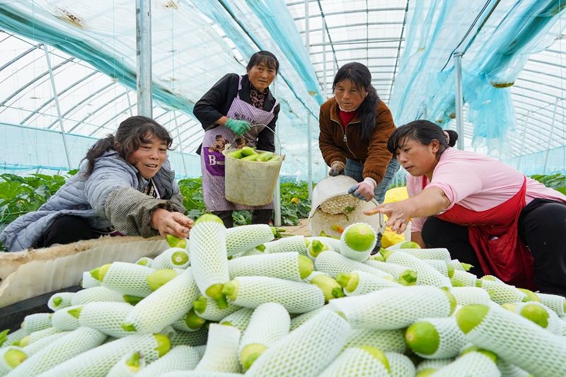 在大棚的通道内,新鲜的西葫芦就地分拣、装箱、装车,20个小时后,一筐筐新鲜出炉的威宁蔬菜迅速走进粤港澳大湾区群众的“菜篮子”,直达千家万户的餐桌。