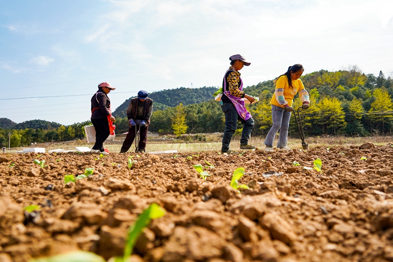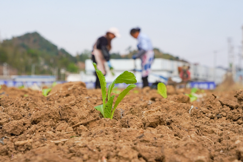 连日来,贵州省毕节市威宁县金钟镇冒水社区积极组织群众抢抓有利天气,移栽青菜,田间地头呈现出一派繁忙景象。蔬菜种植基地里,务工群众正在开沟、运苗、移植。