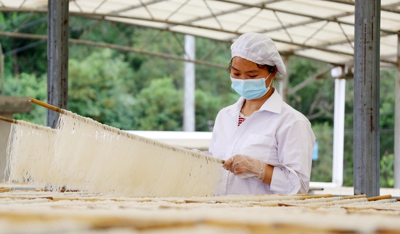 为推动拓展京南米粉品牌的影响力,当地政府积极推介、鼓励企业借助东博会平台,成功将京南米粉销往越南、缅甸等东盟市场。目前,企业年产京南米粉1000吨,年产值1000万元以上,每年为村集体经济增收37.5万元,带动旺安安置点及附近村民500多户增收致富。