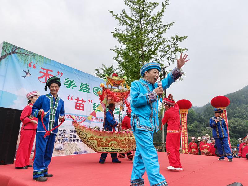 5月18日,湖北省恩施市盛家坝镇第十届农耕农俗文化节暨乡村振兴人才联盟活动在二官寨村旧铺顺利举行,吸引了周边村民、游客、摄影爱好者共计1000余人前来参观体验。