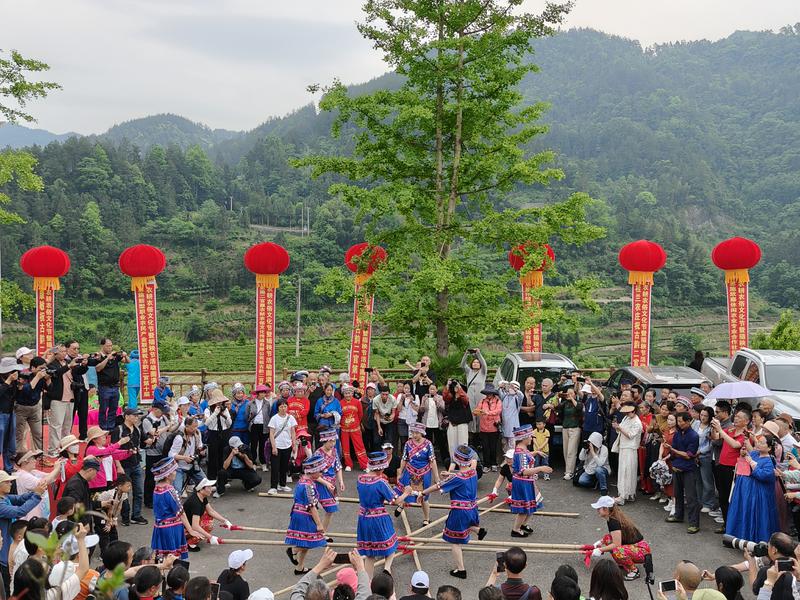 在活动中,村民们载歌载舞,采莲船、扇子舞、竹竿舞等节目轮番上演。土家特色传统婚俗情景演绎吸引游客纷纷驻足,喜庆欢乐的民俗氛围引得现场观众笑声不断。