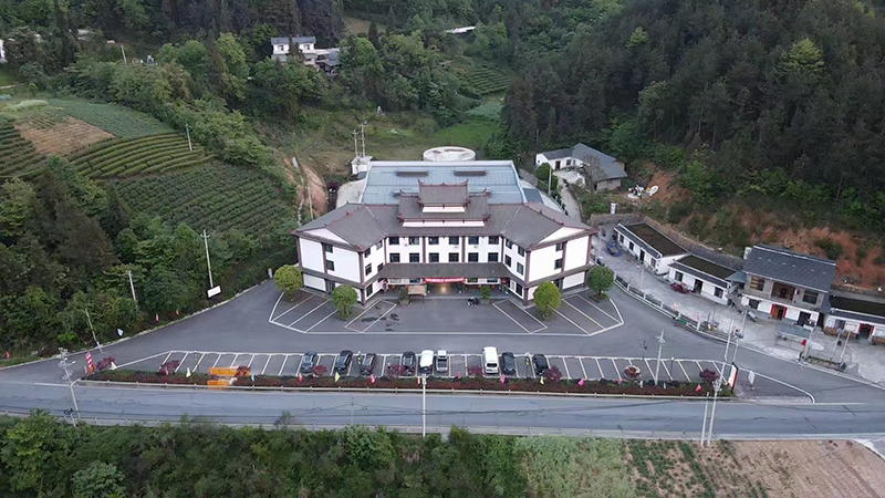 山上茶园飘香,山下三产融合。在投入800万元项目资金的白杨坪镇九根树村茶旅综合体内,每一片绿茶在此找到归宿。“这个综合体有近8000平方米,全部应用现代化制茶设备、全自动生产线,鲜叶进去,成茶出来,效率翻了好几番,茶农们的收益也成倍增长。”茶旅综合体负责人刘道军说到。