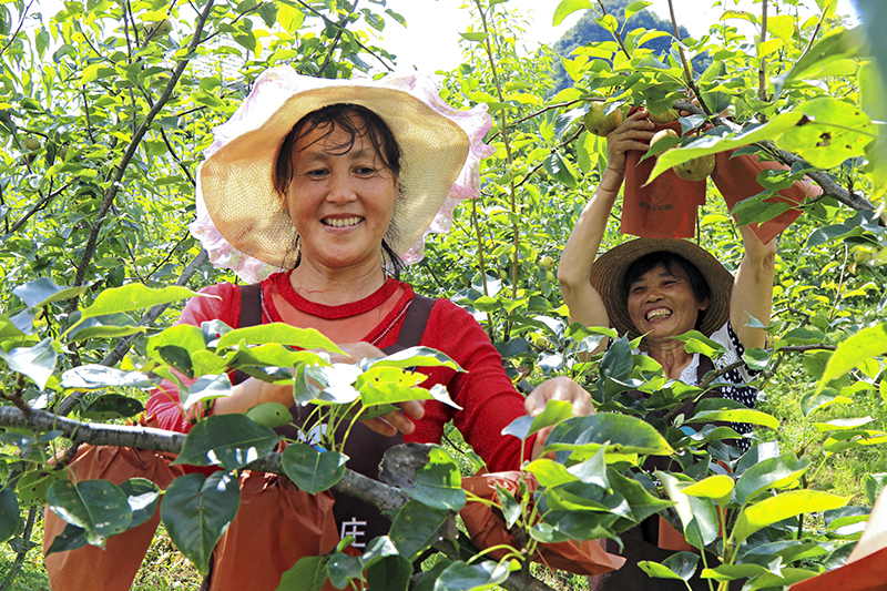熊家岩锦园农庄工作人员采摘水果(谭华 摄)