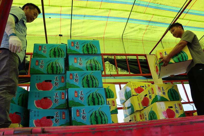 据大棚种植户、洛阳市优秀乡贤孙光辉介绍,他种植的美都西瓜具有易坐果、结瓜多、裂瓜少的优点。现在正值西瓜成熟上市的关键期,他每天都要走进大棚看看西瓜的长势和情况。“美都西瓜皮薄瓤红,汁水较多,口感很好,这两年比较受客户青睐。今天,来自广东、福建的客商一次运走西瓜10万斤,价值14余万元。”孙光辉介绍。
