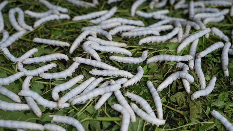 走进广西河池市巴马瑶族自治县甲篆镇兴仁村,映入眼帘的便是一大片桑蚕养殖基地,农户们有的忙着采摘鲜嫩桑叶,有的将一筐筐桑叶有序送往蚕房……蚕房内,几十张蚕匾里,蚕虫们沙沙作响,蠕动进食,生机勃勃。