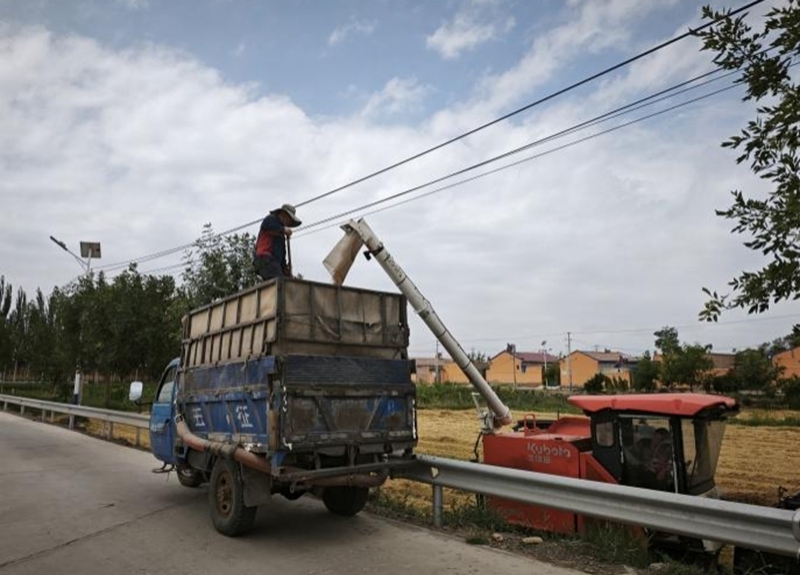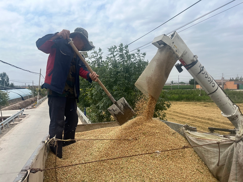 种粮大户杨军今年种植了130亩小麦,他提前与农机合作社签订收割协议,以确保机械按时进场作业。此次投入使用的新型联合收割机,不仅显着提升了收割效率,还最大限度降低了粮食损耗。秸秆回收后,杨军计划复种青贮玉米,进一步提高亩产收益。“今年小麦长得真好,产量和品质都没得说!多亏了科学种植和高效收割,亩产量才能达到1000斤左右,现在粮食价格大概是1.25元每斤,算下来收入少不了。”忙着指挥收麦的杨军,脸上洋溢着丰收的喜悦。