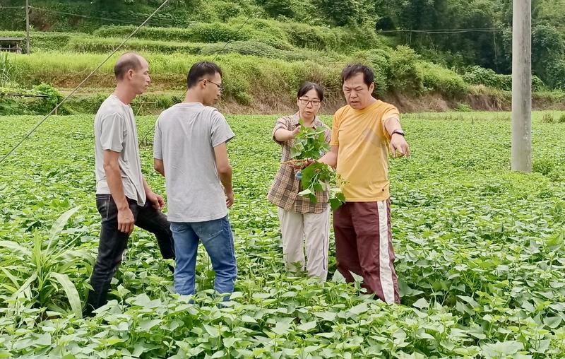 广东省农村科技特派员团队协助潭布镇政府及驻村工作队,在前期打造“潭布番薯”“潭布番薯干”及“粤观薯”的基础上,成功引进并标准化种植广东省农业科学院作物研究所选育的广菜薯系列甘薯新品种。