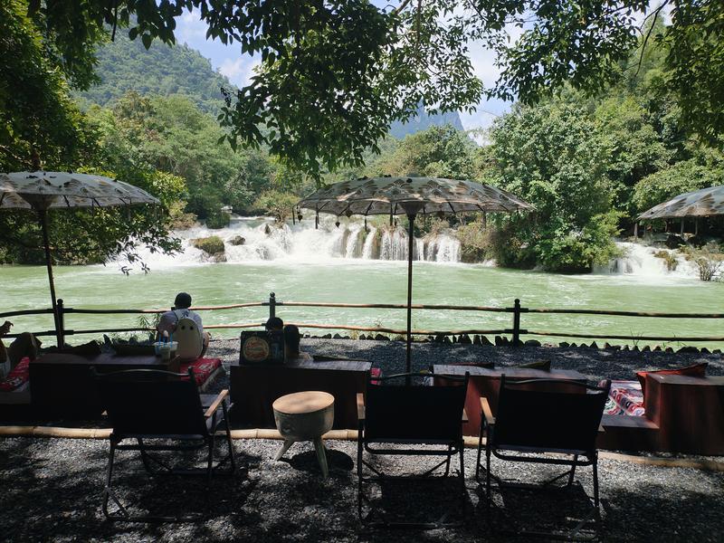 位于中越界河之畔的蓝洞跨国瀑布咖啡景区是硕龙镇“边关风情旅游区”的核心项目之一。瀑布飞泻而下,水声轰鸣,咖啡香气袅袅,这个占地约200亩的项目巧妙融合了壮观的瀑布景观与浓郁的咖啡文化,为游客打造了“绿野仙踪”般的独特体验。在项目推进过程中,人大代表们发挥了不可替代的协调作用。