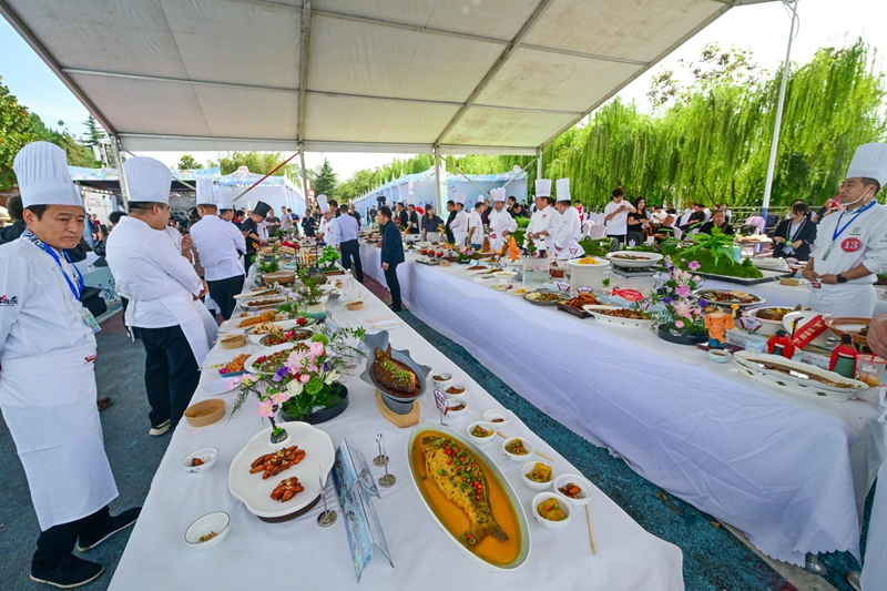 9月29日,陆浑湖畔炉火升腾、香气弥漫,“洛阳味道·2025”专项行动洛阳市首届鱼宴烹饪大赛在嵩县陆浑度假村举行。来自洛阳周边县区的34家餐饮企业、百余名厨师同台竞技,以100余道创新鱼肴共同演绎河洛饮食文化的深厚底蕴与时代新意。比赛融合厨艺比拼、生态展示与产业对接,将“陆浑鱼宴”从单一的美食体验升级为带动区域发展的全域旅游IP。