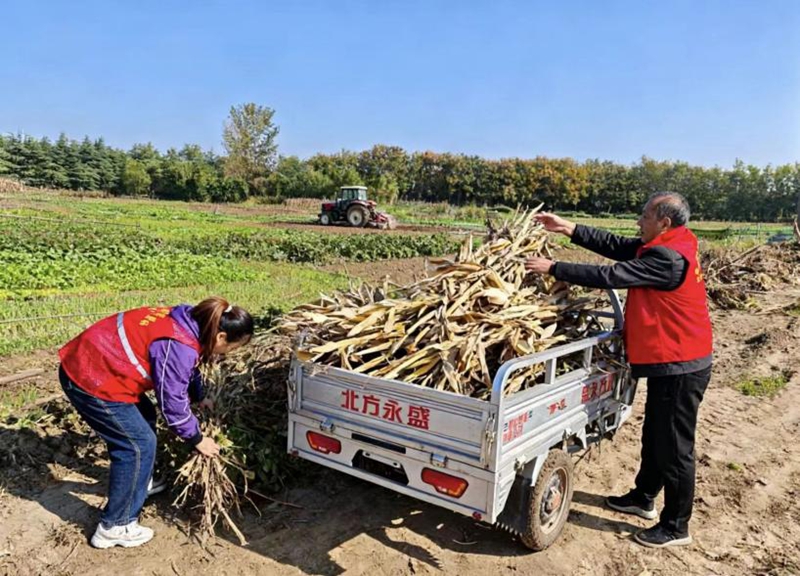 志愿者与农户并肩劳作,主动承担掰玉米、运秸秆、整地块等农活,有效缓解农户劳动力不足难题。同时,同步开展政策宣传与服务保障:宣讲秋收安全生产知识、秋播技术要点及惠农政策,细致排查农机作业安全隐患,积极协调解决农机调配、农资运输等实际问题,全方位保障秋收颗粒归仓、秋播有序推进。