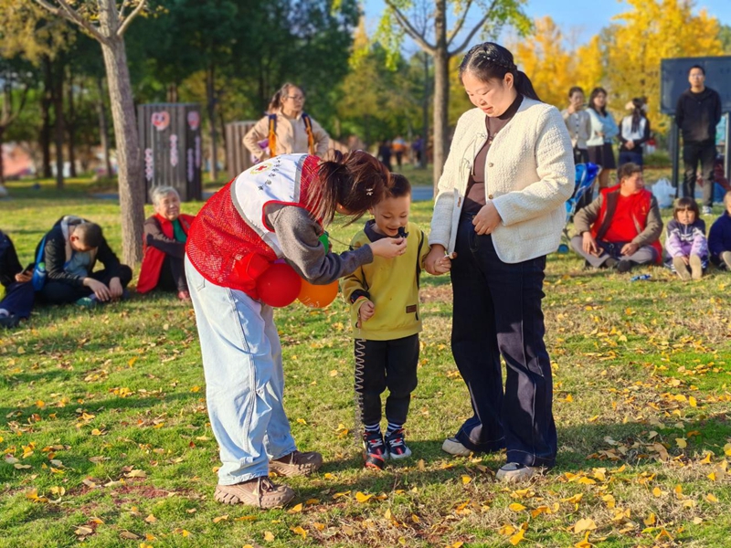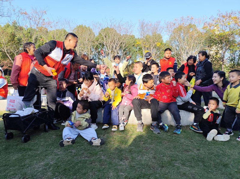 在互动环节,志愿服务队不仅为孩子们准备了可口的零食和水果,还精心策划了“同心接力”“击鼓传花”等亲子游戏。志愿者们不仅引导孩子们积极参与,更鼓励家长共同融入,现场洋溢着温馨与欢快的气氛,孩子们手捧零食,脸上绽放出灿烂的笑容。队员们以耐心的引导和温暖的鼓励,陪伴他们逐步敞开心扉,勇敢表达自我。
