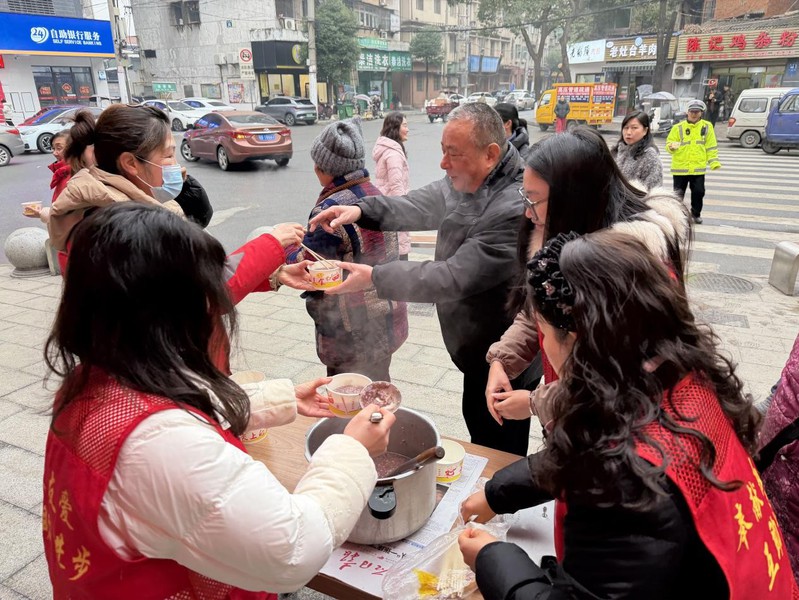 活动现场,暖意融融。志愿者们提前筹备,将熬好的腊八粥细心分装至环保餐碗里,有序为前来领取的居民派发。社区秉持暖心服务理念,特别为残障人士、执勤交警、环卫工人等特殊群体送粥,把关怀与温暖精准送达。接过温热粥品,居民们脸上满是幸福笑意,一句句感谢的话语交织成温馨画面,现场秩序井然。