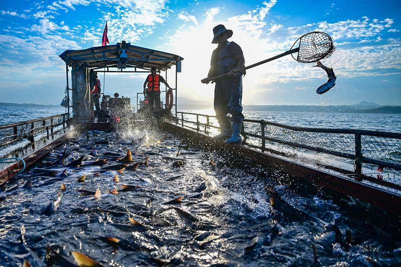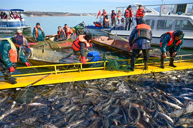 生态渔业还推动了产业深度融合。“洛阳陆浑冬捕活动”及“巨网捕鱼”已成为特色文旅名片,带动“鱼故事”餐厅、环湖鱼宴酒店、精品民宿等业态蓬勃发展。通过多渠道营销,当地已形成从生态养殖到餐饮休闲、旅游观光的全产业链。水库先后获评全国休闲渔业示范基地、国家级水产健康养殖和生态养殖示范区等。