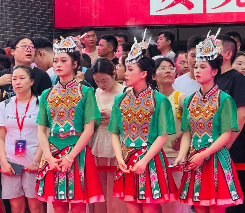 “十姊妹”婚宴派对更是向游客敞开怀抱。单身男女登台互动,在歌声中寻觅良缘。“以歌为媒,自由恋爱”的女儿会精髓在此刻得到最生动的诠释。