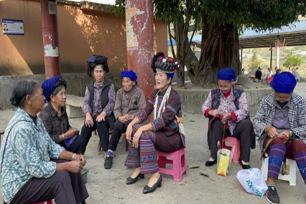“奶奶,您知不知道咱们党的二十大是什么时候召开的呀?”来到金平县哈尼田村委会大保寨村,李燕走向正在做针线活的李奶奶问到,并向大家表明自己的来意,之后便开始了正式宣讲。大家围坐在一起,一边干针线活一边认真听李燕讲解。李奶奶拉着李燕的手讲到:“我们国家就是好啊,处处为我们老百姓着想,我的身体一直不太好,原本看病要花很多钱的,但是大部分国家都给报销了,减轻了我们很多负担。”