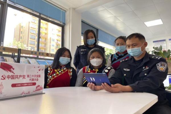 党的二十大召开以来,该所主动作为,精心选派政治理论扎实、群众基础好、精通民族语言的民警辅警成立包含傈僳、白、普米、纳西、景颇等语种在内的“民族语言宣传队”,针对不同民族采取不同语种的宣传党的二十大精神,社区民警尹中山就是其中一员。