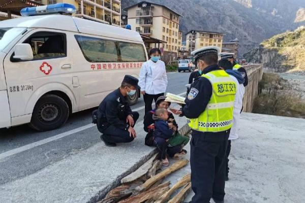 洛本卓边境派出所联合古登交警中队救助1名道路交通事故受伤的儿童