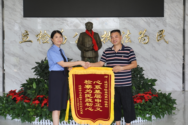 近日,湖南省涟源市湖泉镇党委、政府及中石村村委会代表专程来到涟源市人民检察院,将一面绣有“秉公执法护民利,检察监督显担当”的鲜红锦旗与一封情真意切的感谢信郑重送达。这面锦旗,不仅是对检察机关揭穿虚假诉讼、为村集体挽回损失的由衷致谢,更映照出群众对公平正义的热切期盼。
