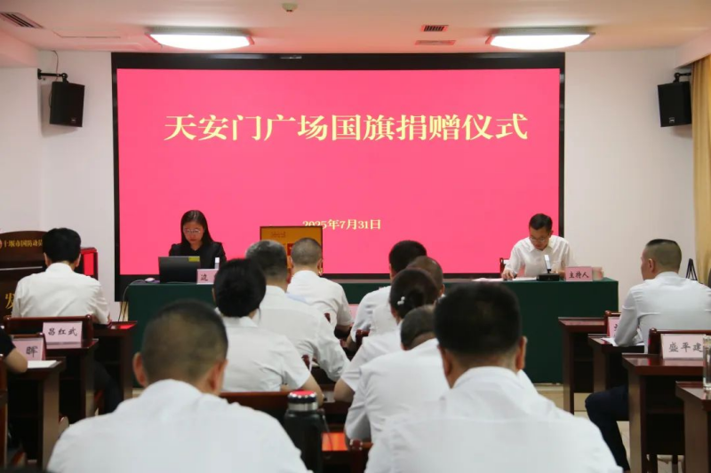 捐赠仪式在庄重的国歌声中拉开帷幕,全体与会人员起身肃立,共同见证了这一时刻。受赠的这面国旗将作为十堰市国防动员办公室国防动员展厅的重要展品进行常态化展陈,成为开展爱国主义和国防教育的重要载体,以此激励全体干部职工积极进取,为国防动员事业贡献力量。
