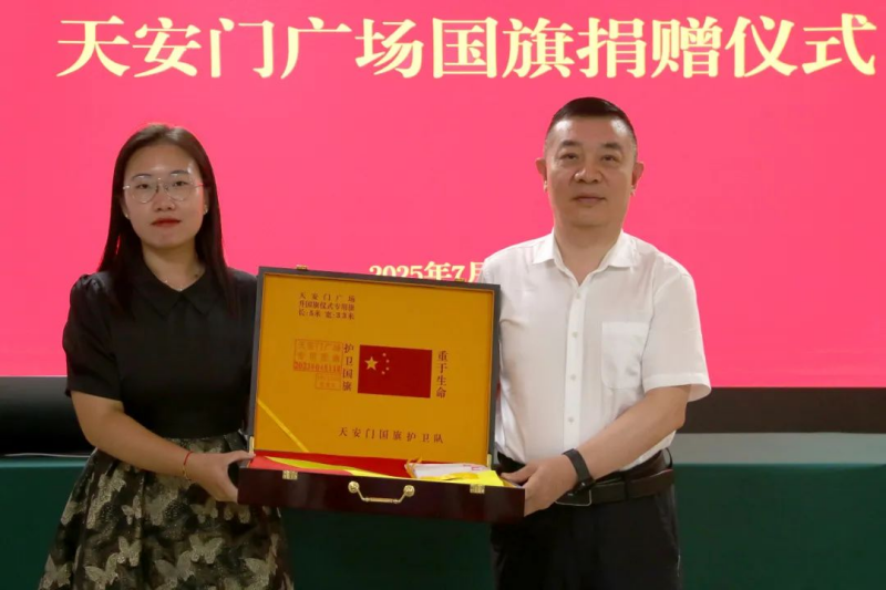 7月31日下午,军人后代郧西县委组织部干部边畅将其外公智全保生前获赠的一面天安门广场国旗,正式转赠给湖北十堰市国防动员办公室,为十堰的国防动员宣传教育增添更为厚重的内涵与精神力量。