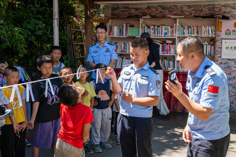 “警察叔叔、警察叔叔,我来回答,我来回答……”8月4日,在云南怒江贡山县秋那桶村“半山花语”爱心书屋内欢笑声阵阵。怒江边境管理支队丙中洛边境派出所所长黄华带领民警们,为40余名留守儿童及假期学生带来了一场别开生面的安全普法课与益智活动,用法治阳光和温暖陪伴守护孩子们的成长。这已是该所民警今年暑期第二次走进这间高山上的书屋。