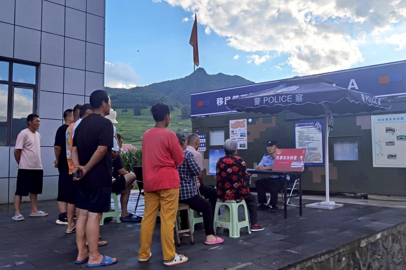 面对辖区工地密集、人员复杂、边境法规意识薄弱的现状,六道沟边境派出所民警化身“法律快递员”,身影活跃于工地帐篷、果园地头与游客集散点。在工棚区,聚焦《劳动合同法》《安全生产法》及维权途径,发放《务工人员权益保障指南》,有效预防劳资纠纷。在果园,结合农时传授防盗防骗技巧,普及农产品质量安全法规,利用入口警示喇叭循环提醒,守护果农“舌尖”与“钱袋”安全。对游客则重点强化边境管理法规宣传,严防抵边越界。精准滴灌的法律服务,将风险隐患消解于萌芽。