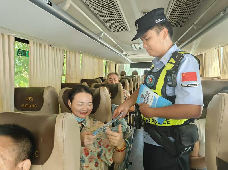 活动设立普法宣传点,重点解读《中华人民共和国出境入境管理法》《中华人民共和国反电信网络诈骗法》等与边民群众生活密切相关的法律法规。民警结合近期破获典型案例,深入剖析非法出入境、电信诈骗等违法犯罪行为的法律后果及社会危害,并向群众发放图文并茂的宣传手册500余份。针对近期出入境高峰的节点性风险,民警揭露“高薪出境务工”“跨境婚姻介绍”等诈骗套路,提醒群众务必通过正规渠道办理出入境手续。
