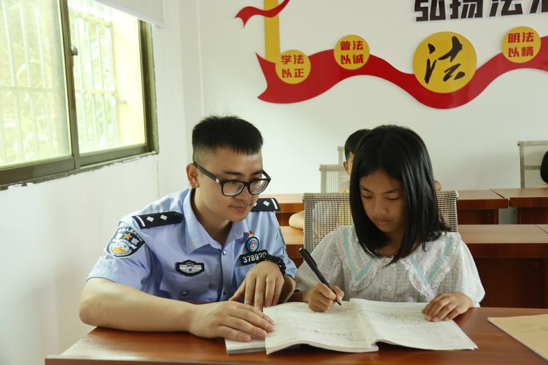 “警察老师,这个词语我也不会读,你教教我、这个成语的意思可以讲讲吗?”刚开课那会儿,孩子们小手紧紧攥着一角、眼神怯生生地避开民警的目光,这会都围到身边提问、抢着回答,原先拘谨的小脸不见了,现今满是藏不住的认真与求知,主动分享自己独立完成的作业、背诵古诗。