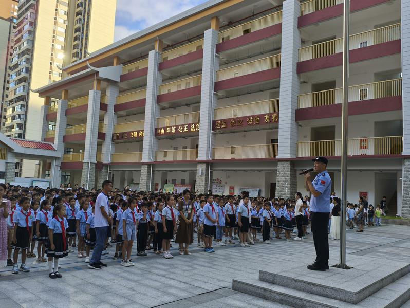 9月15日清晨,广西崇左边境管理支队那艾边境派出所民警借升旗仪式契机,走进辖区小学开展“远离欺凌,阳光成长”防欺凌主题教育活动,为师生带来一堂生动的法治课。