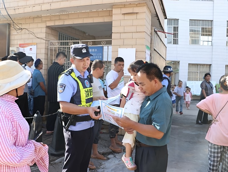 落日余晖温柔地洒在金龙镇中心幼儿园学校门口,正值放学时分,熟悉的护学岗悄然多了一重身份。9月17日,国家网络安全宣传周活动开展之际,广西崇左边境管理支队金龙边境派出所民警辅警将护学执勤与知识普及相结合,在放学高峰时段化身“移动宣传员”,为等候接娃的家长、路过群众及学生送上一堂生动的网络安全课。