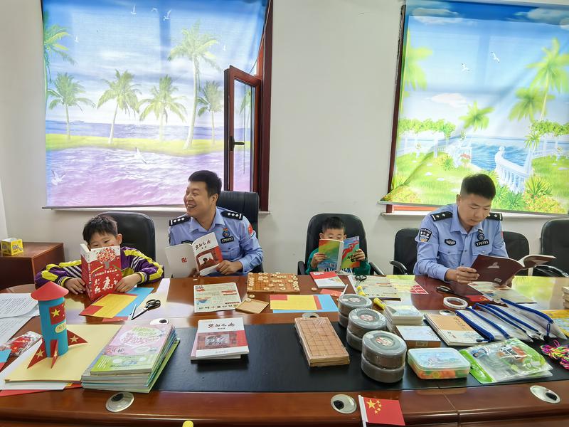 亲子共读环节温情满溢。派出所民警与村干部提前精挑细选《小兵张嘎》《我爱这蓝色的海洋》等红色经典读物,以及《中国传统节日故事》等民俗书籍,一一送到每个家庭手中。农家书屋里,民警们轻揽孩子肩头,逐字逐句细细品读;遇到历史背景或民俗典故,便放慢语速耐心讲解;读到精彩处,还与孩子低声交流感悟。孩子们听得聚精会神,遇到疑问立刻举手提问,清脆的问答声与翻书声交织,满室书香沁人心脾。“通过和警察叔叔一起读书,我知道了国庆节是祖国妈妈的生日,也了解了以前的英雄故事,特别有意义。” 林城村小学生李俊伯捧着书本,眼神里满是认真。