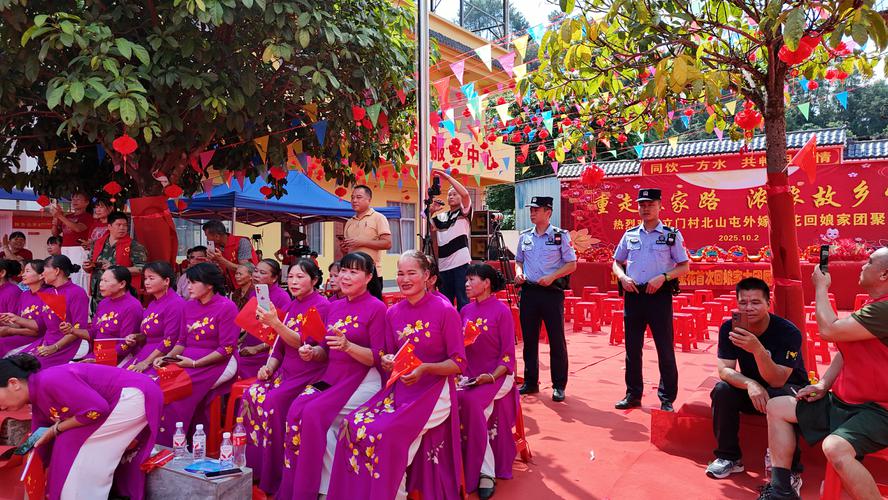 2025年10月2日,广西崇左市宁明县寨安乡立门村北山屯洋溢着浓浓的节日氛围。在举国欢庆新中国成立76周年之际,该屯举办首届“外嫁金花回娘家”民俗活动,数名外嫁金花身着盛装回到家乡,与亲人团聚共话家常。为确保活动安全有序,北山边境派出所提前部署,出动3组6名警力全程开展安保工作,同时主动融入群众参与活动,以“警民同乐”的方式为国庆佳节增添温情。