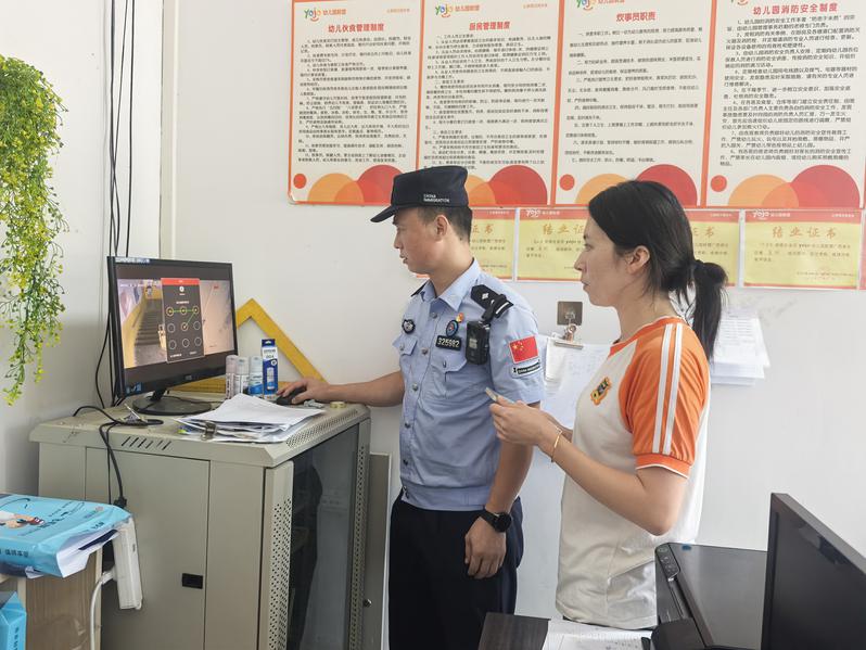 在校园安全设施检查中,民警重点对校园封闭管理情况进行核查,仔细查看校门门禁系统是否正常运行、围墙防护栏有无破损,严防无关人员随意进入校园;随后对校内消防设施展开全面排查,逐一检查灭火器压力是否正常、消防栓能否正常出水、应急照明和疏散通道是否畅通,确保各类消防设备符合安全规范,关键时刻“拉得出、用得上”;同时,民警还对校园监控系统进行测试,排查操场、教学楼出入口、食堂等关键区域的监控覆盖盲区,要求学校及时修复故障设备,保障监控录像清晰、留存完整,为校园安全增添“可视化”保障。