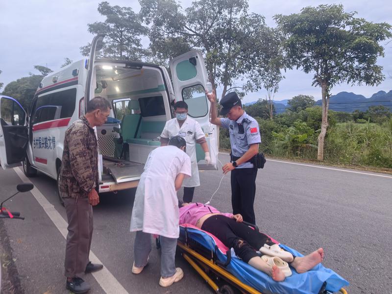 10月21日傍晚17时许,崇左边境管理支队水口边境派出所接群众报警,在龙州县水口镇独山村附近路口,一名村民骑电动车摔入路边灌木丛,伤情比较严重。