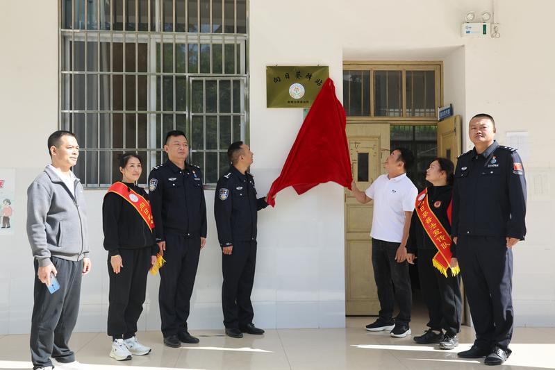 仪式现场,富宁边境管理大队大队长赵博与民警代表身着整齐警服,与学校校长、教师代表共同揭开“向日葵驿站”牌匾上的红布,鲜艳的向日葵标志在阳光下格外醒目。大队长赵博在致辞中说:“向日葵象征着阳光与希望,我们希望驿站能像向日葵一样,为孩子们传递法治温暖,指引成长方向。”