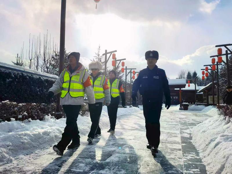 依托村内闲置民居改造建成“边境警务服务站”,整合户籍办理、纠纷调解、安全宣传、应急救助等多项功能,为村民和游客提供“一站式”服务。针对老年人、留守儿童等特殊群体,推出“上门办、代代办”服务,民警定期进村入户办理身份证、户籍迁移等业务,每年累计上门服务超50人次。同时,发动村民中的党员、退役军人、致富带头人组建“长白山义警”队伍,开展日常巡逻、隐患排查、游客引导等工作,形成“民警主防、义警协同、全民参与”的共治格局,让平安成为木屋村最坚实的底色。