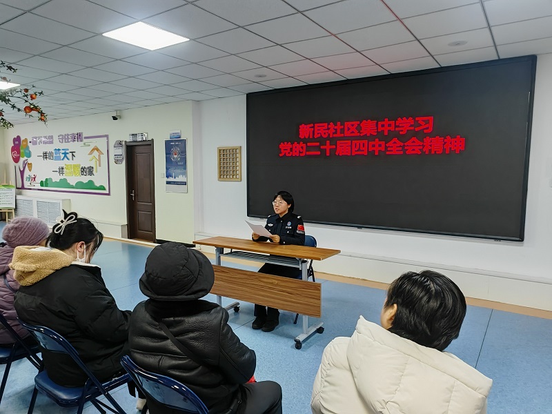 为深入学习宣传贯彻党的二十届四中全会精神,推动全会精神在基层落地生根,延边边境管理支队新华边境派出所联合新民社区共同举办了党的二十届四中全会精神集中学习宣讲会。民警担任宣讲员为社区工作人员和居民进行了专题宣讲。