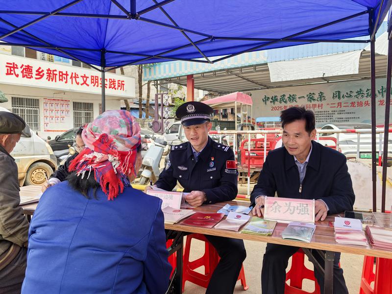 近日,广西崇左边境管理支队科甲边境派出所联合驻地政府开展“宪法进边关”主题宣传活动,通过发放宣传单、现场释法答疑等接地气的方式,将法律知识送到边民群众身边。