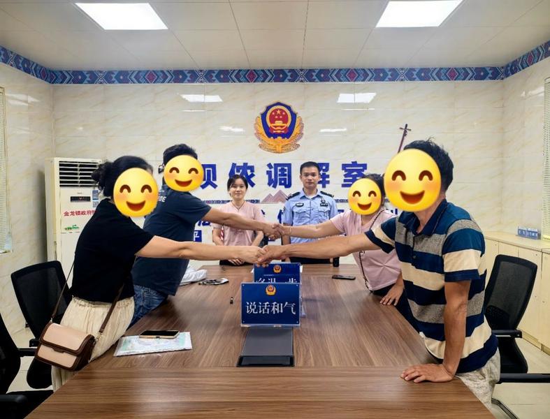 “有事好商量,咱们坐下来聊一聊。”这是金龙边境派出所民警调解矛盾时的常用语。辖区多民族聚居,派出所立足本地民族文化特色,借助壮语“呗侬”(意为“兄弟姐妹”)的情感联结,创新打造“呗侬调解室”,建立“1+N”联调机制,将“五心调解工作法”贯穿矛盾化解全流程,构建起多部门协同、法理情融合的矛盾纠纷多元化解体系。所谓“五心调解工作法”,即热心接待群众、用心倾听诉求、细心了解情况、耐心说服教育、真心排忧解难,让每一起纠纷调解都充满温度与力度,切实提升群众获得感、幸福感、安全感。