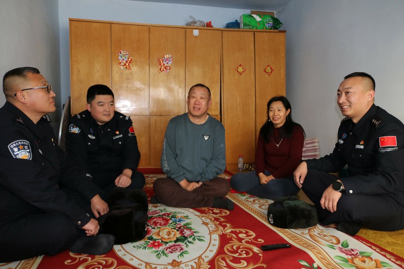 马鹿沟镇龙岗村的退伍老兵杨大爷,因意外导致双腿残疾、行动受限。带着米面粮油等慰问品,民警们走进杨大爷家中,与老人促膝长谈。从身体近况问到生活难处,从日常起居聊到冬季保暖,句句关怀直抵人心。