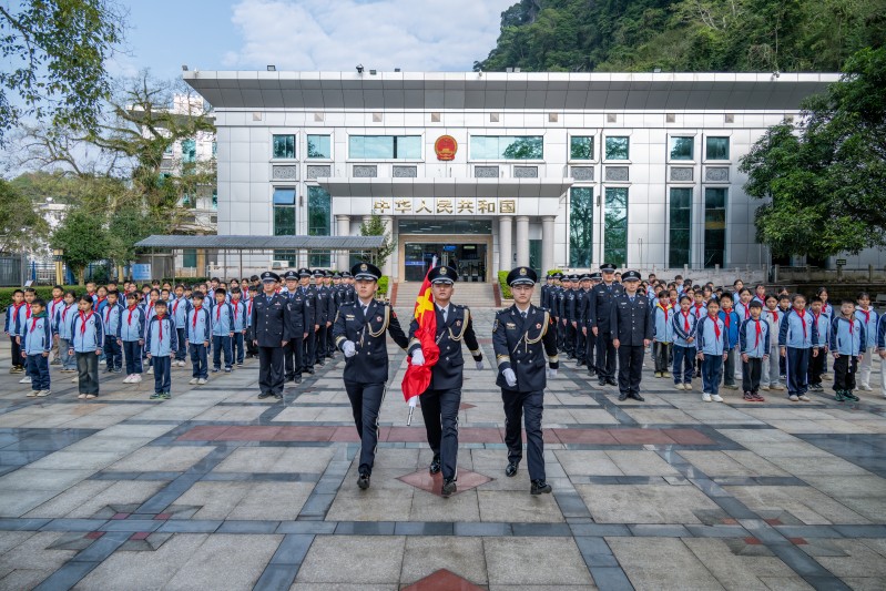 1月7日清晨,南疆边陲,晨曦微露。在第六个中国人民警察节即将来临之际,广西壮族自治区那坡县平孟口岸国门前,气氛庄重而热烈。广西平孟出入境边防检查站、百色边境管理支队民警辅警代表,与来自平孟镇九年一贯制学校的100名师生齐聚于此,共同举行了一场特殊的升旗仪式。