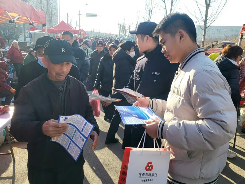 为切实提升辖区居民对非法集资的防范意识和识别能力,从源头上遏制非法集资活动蔓延,保护人民群众财产安全,维护辖区经济金融秩序稳定,1月12日上午,山东省济南市长清区马山派出所主动作为,联合马山镇政府、辖区农商银行,在居民社区、集市、公园广场等人员密集区域,共同组织开展了一场以“警惕高利诱惑,远离非法集资”为主题的集中宣传活动。